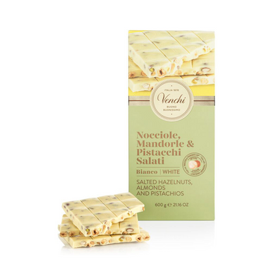 Maxi tavoletta da 800gr di cioccolato bianco con frutta secca leggermente salata intera: la versione maxi della classica tavoletta bianca con almen...
