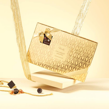 La confezione regalo in latta, contenente cioccolatini assortiti ripieni di crema al latte e extra fondenti 75%, è pronta per essere messa sotto l’...