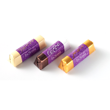 Bastoncini di cioccolato bianco e al latte ripieni di morbida crema ai gusti di cocco e mou. Prodotto senza Glutine Confezione da Gr. 500 Ingredien...