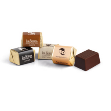 Cioccolatini al latte ripieni nei gusti nocciola, cappuccino, caffé e cacao. Confezione da Gr. 500 Ingredienti e Valori Nutrizionali